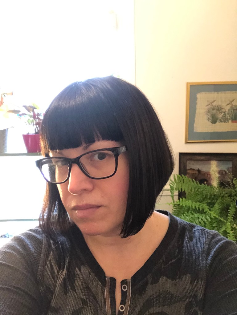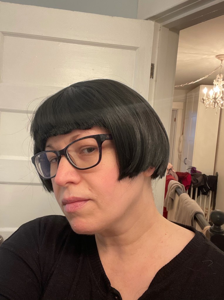 Knowing that hair loss would start soon after my treatment began, I asked Audrey to watch a few YouTube videos on how to cut a bob and boom, presto – I had a fairly decent chin-length angled bob. Sassy! Part of this was practical – cleaning up hair that is only 5″ long would be better than 10″ or so. And part of this was because – why the hell not. You’re losing the hair soon, so why not have some fun. And there was a lot of laughter that day. 🙂