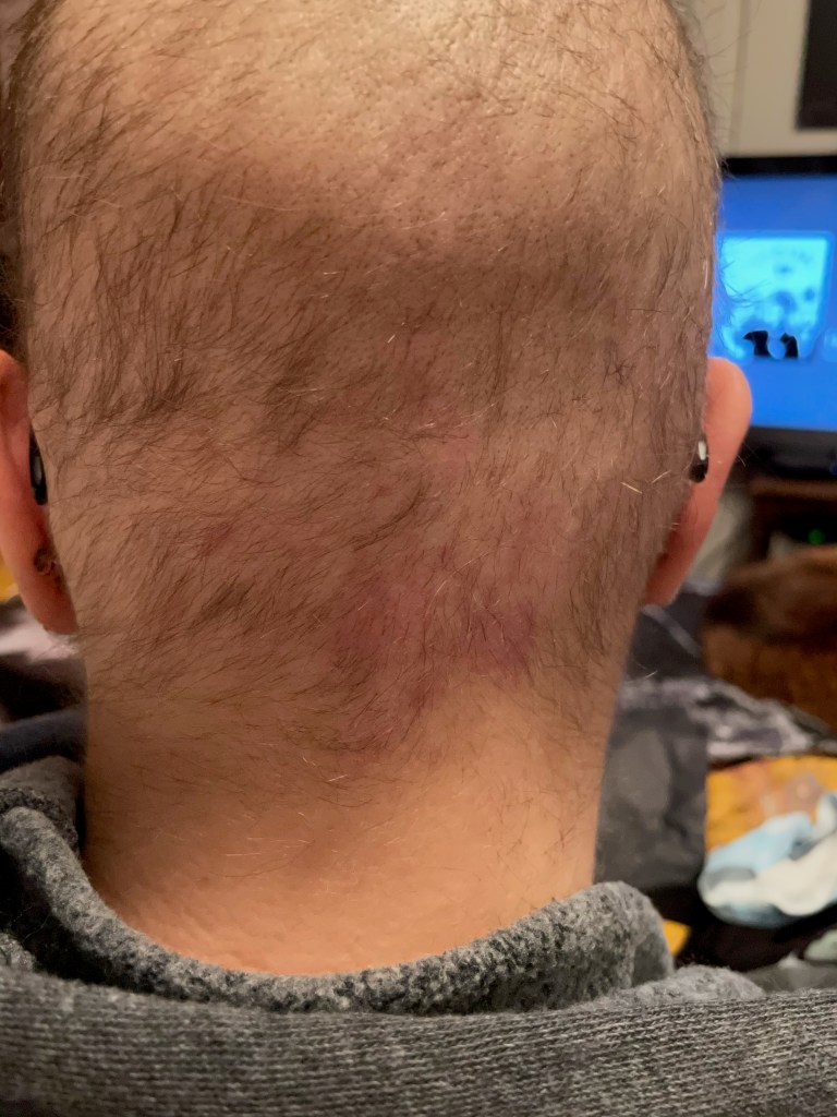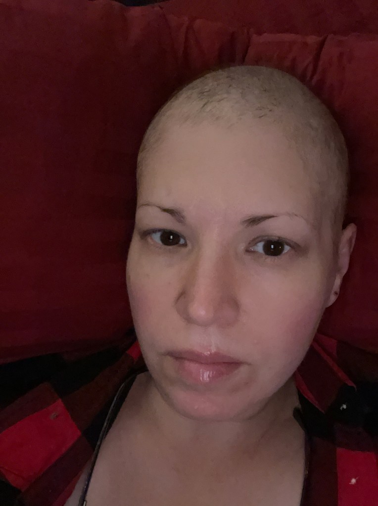 If you’re on this same path as me, you’ll read a lot of blogs and articles on how to shave your head. I decided to follow the advice of several hair dressers, and not shave to the scalp, but close to the scalp. The idea is that in chemo, your hair falls out with the root, and then doesn’t grow for several months. If you shave the hair that’s left on your head, the root will be left behind. And then potentially you experience painful ingrown hairs. No thanks. 1/8″ to the scalp, or close to that, was good for me.